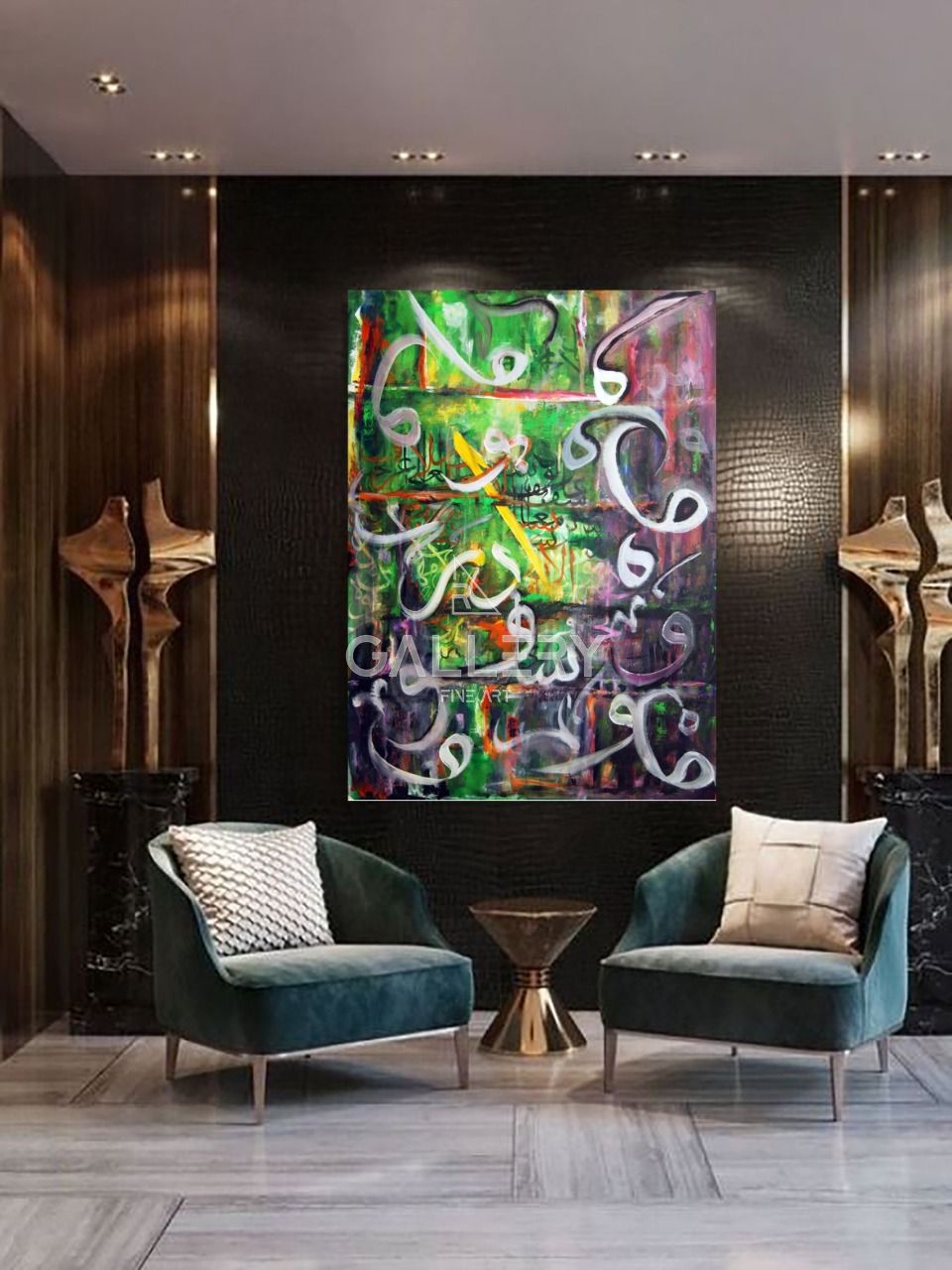 The arabic letter clusters in this artwork speak for commitment and order, while it reflects contemporary ideals of elegance and grace.
