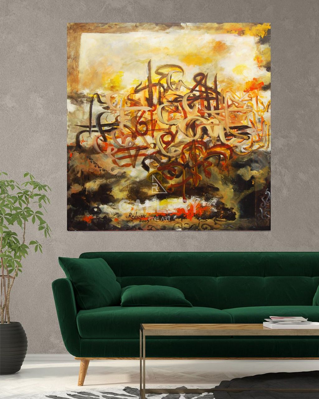 The arabic letter clusters in this artwork speak for commitment and order, while it reflects contemporary ideals of elegance and grace.