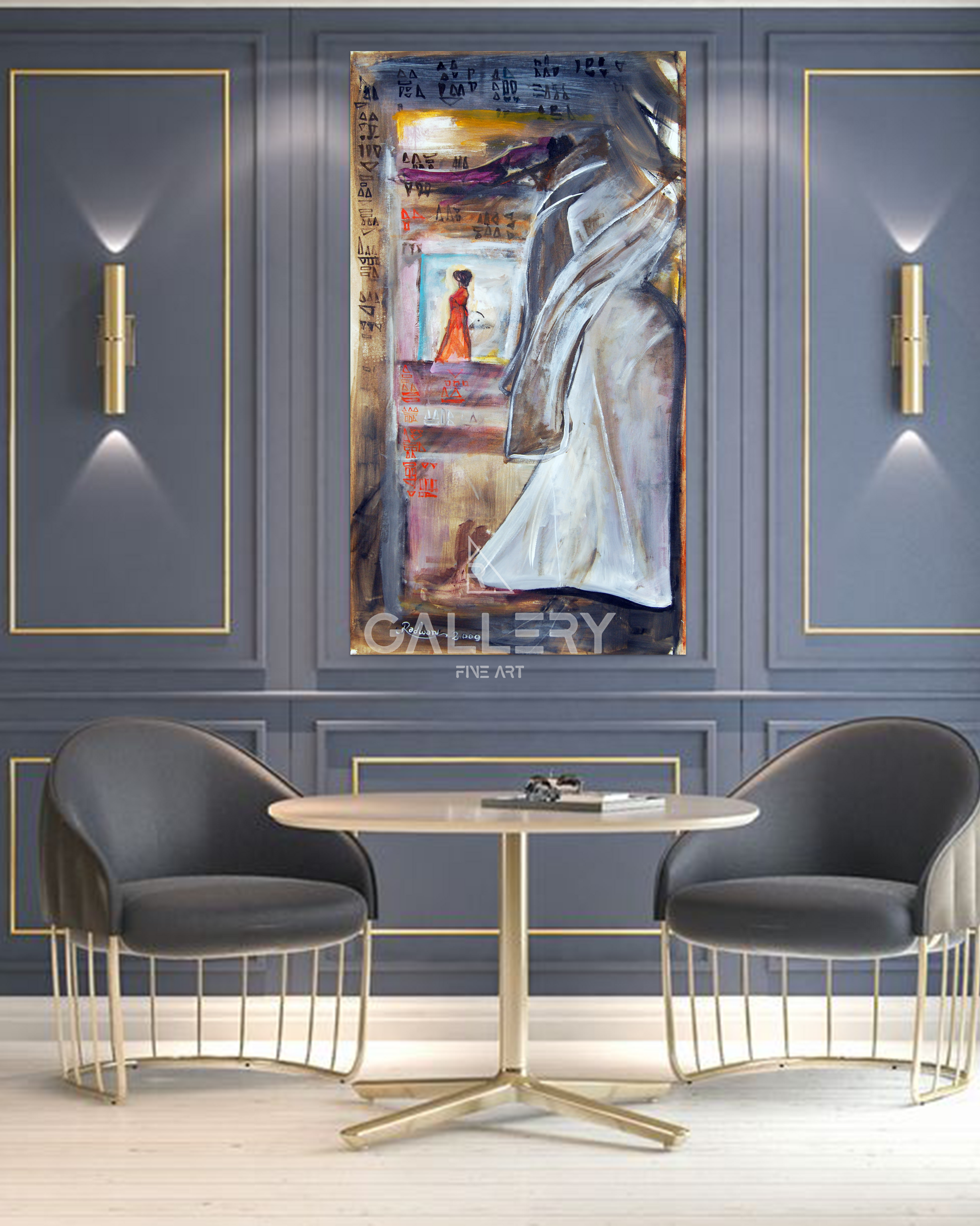 The arabic letter clusters in this artwork speak for commitment and order, while it reflects contemporary ideals of elegance and grace.